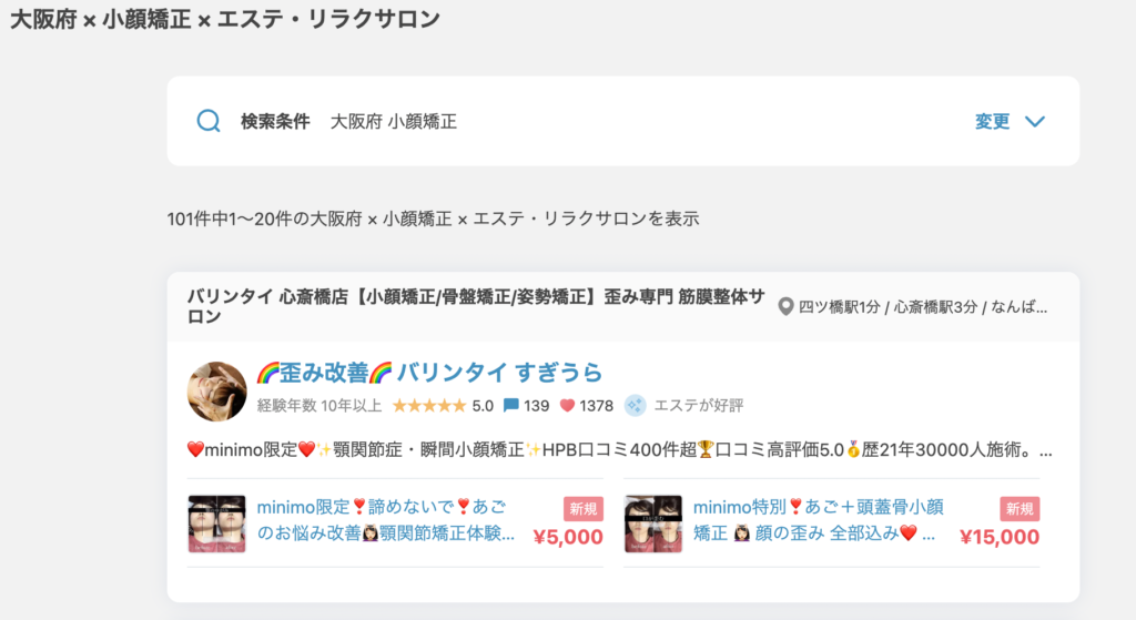 ミニモ(minimo)【大阪府 小顔矯正】おすすめ順1位/101件中