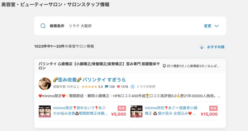 ミニモ(minimo)【リラク 大阪府】おすすめ順1位/1023件中